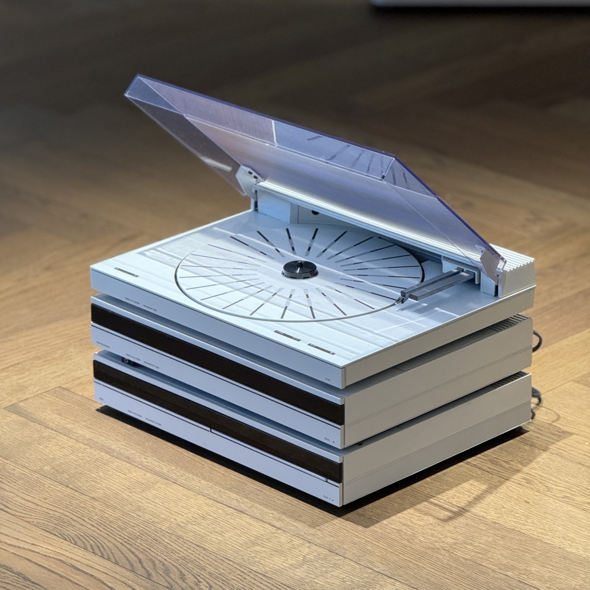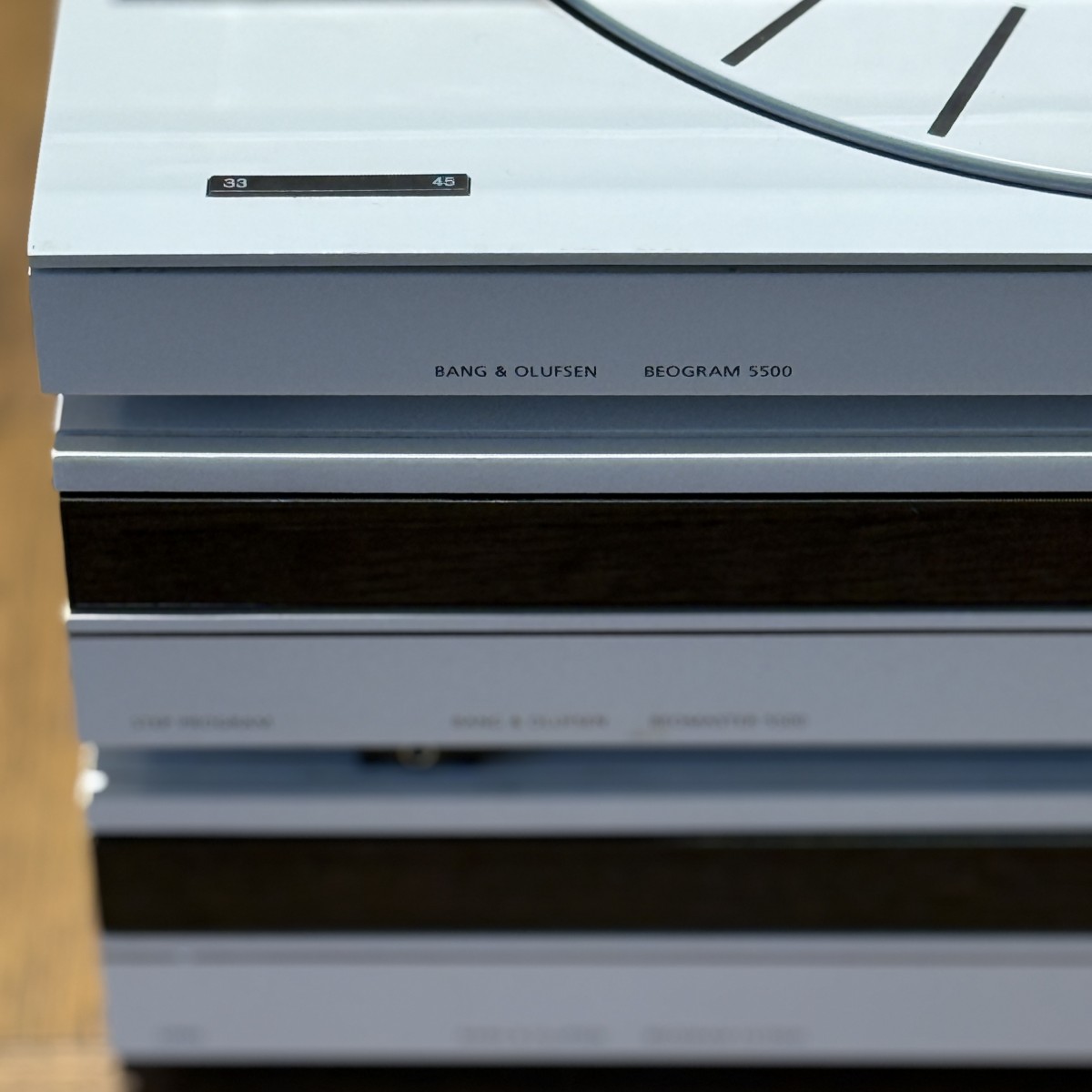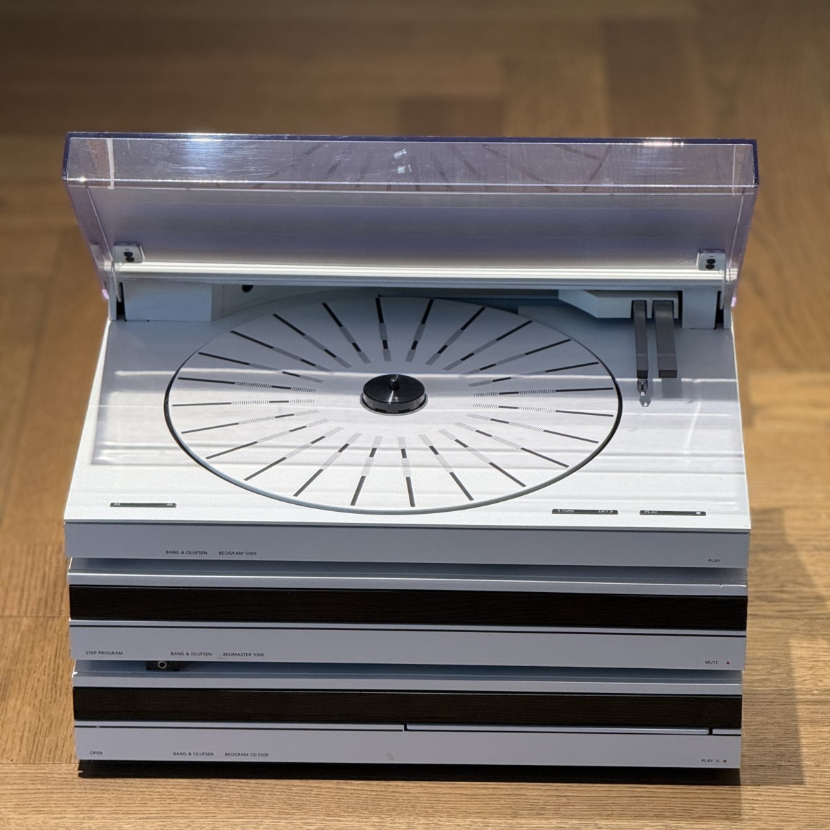 Bang & Olufsen Beosystem 5500 i hvid kombinerer elegant design med klassisk Hi-Fi-lyd. Et komplet anlæg med forstærker, pladespiller, CD-afspiller og båndoptager – skabt til den design- og lydbevidste entusiast.